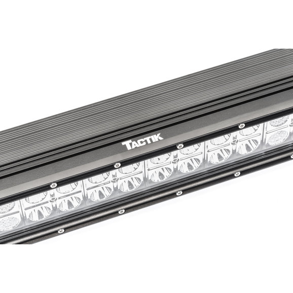 Tactik’s LED light Bars combine the industry-leading power of American made Cree LEDs that exhibit super bright white 6000°K output that’s close to natural sunshine. Tactik kits are an incredible value for the money and include a pre-terminated wiring harness with relay and switch providing a quick and easy installation. Tacktic LED Light Bars are available in 4 widths and feature weather tight Deutsch-style connectors and stainless steel hardware. The durable, powder-coated and include cast aluminum mounting posts that are adjustable. Assemblies have an IP67 waterproof rating and feature combination 8° driving beam and 90° flood beam patterns. The 8° narrow beam LEDs provide light output for driving at higher speeds with longer projection with less peripheral lighting. The 90° flood LEDs provide ideal peripheral lighting for off road trail riding at lower speeds. Lamps are not legal for use on public roadways and are intended only for off-road use.