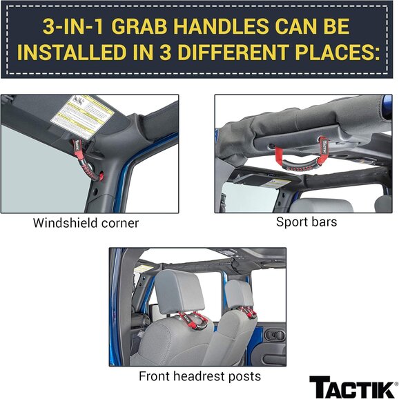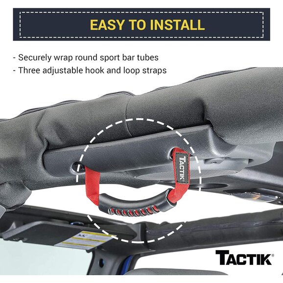 The TACTIK 3-in-1 Grab Handle for Jeep Wrangler JK is the ultimate accessory for added convenience and functionality on your off-road adventures. Designed with a rugged, tactical look, this versatile grab handle can be mounted in three different areas of your Jeep. Made from durable, high-strength materials, the TACTIK grab handle is built to withstand tough conditions while providing a comfortable grip. Its universal fit for Wrangler JK roll bars ensures a quick and easy installation without any tools, making it a practical upgrade for any Jeep enthusiast.