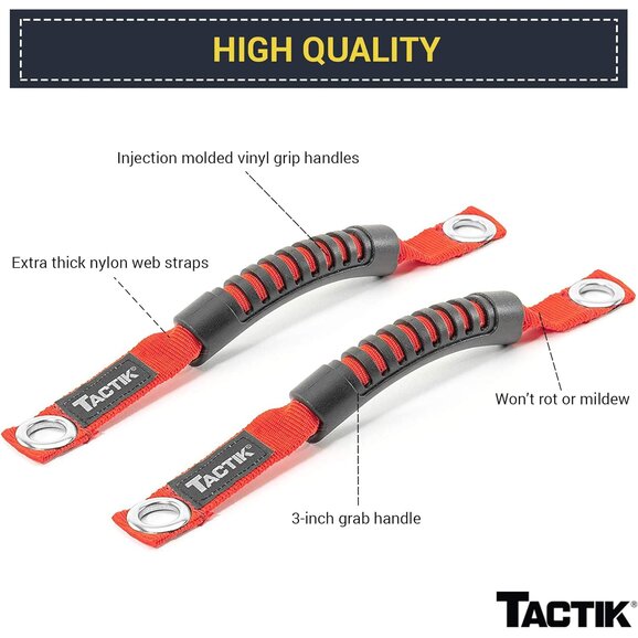 Rugged Nylon & Vinyl Grips: We use a thick, durable nylon webbing with a heavy-duty vinyl grip for each handle to give them more strength and resilience when pulling, tugged, and holding on.
