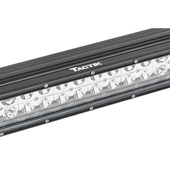 Tactik’s LED light Bars combine the industry-leading power of American made Cree LEDs that exhibit super bright white 6000°K output that’s close to natural sunshine. Tactik kits are an incredible value for the money and include a pre-terminated wiring harness with relay and switch providing a quick and easy installation. Tacktic LED Light Bars are available in 4 widths and feature weather tight Deutsch-style connectors and stainless steel hardware. The durable, powder-coated extruded aluminum housings are built to endure off-road use and include cast aluminum mounting posts that are adjustable. Assemblies have an IP67 waterproof rating and feature combination 8° driving beam and 90° flood beam patterns. The 8° narrow beam LEDs provide light output for driving at higher speeds with longer projection with less peripheral lighting. The 90° flood LEDs provide ideal peripheral lighting for off road trail riding at lower speeds. Includes Tactik’s 1 Year Limited Warranty. Lamps are not legal for use on public roadways and are intended only for off-road use.
