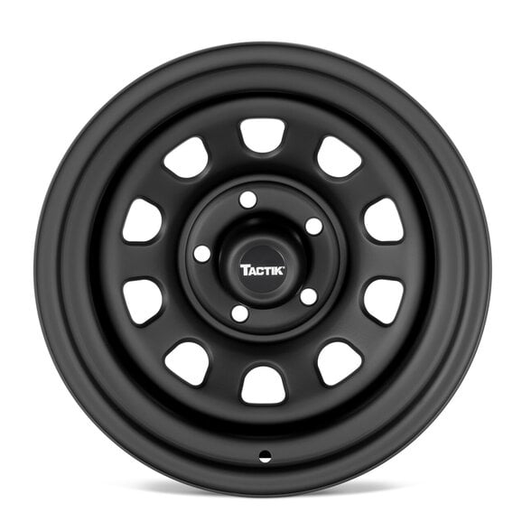 Tough, Durable, Great-Looking and at an Amazing Price! TACTIK steel wheels feature classic styling and are SAE J 2530 tested for strength and durability to endure daily use and off road abuse. TACTIK wheels are E-coated and powder coated with a durable satin black finish on both sides for superior corrosion resistance and lasting good looks. Wheels include a black TACTIK logo black center cap.
