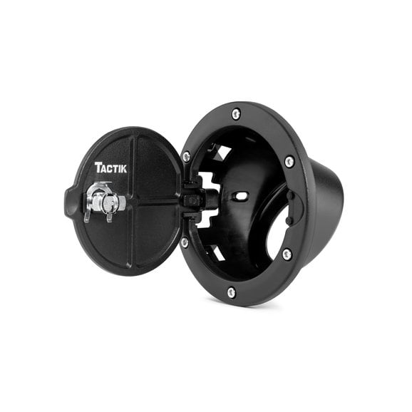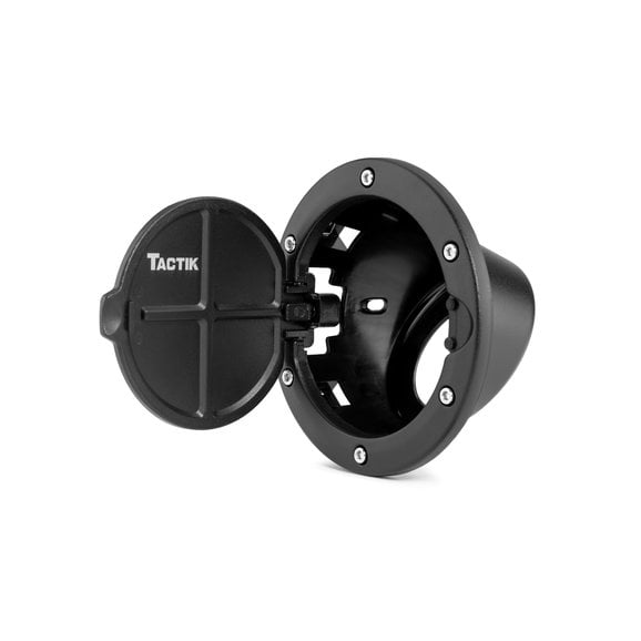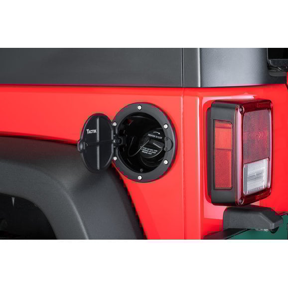 Keep those pesky fuel thieves at bay with Tactik’s Billet Aluminum Fuel Door for Jeep Wrangler JK. Choose between a secure locking fuel door, a patriotic American Flag door, or a sleek non-locking door, all choices are sure to make your Jeep stand out. Constructed of heavy-duty corrosion resistant billet aluminum, these fuel doors are sure to last. The locking fuel door is sturdy enough to keep intruders from stealing the fuel from your Jeep. The patriotic look of the American Flag fuel door shows off the famous stars and stripes. The non-locking fuel door offers a sleek look that finishes of the side of your Jeep. The durable textured black powder coat is sure to last in the worst conditions as well as the occasional drop of fuel landing on the finish. The lockable fuel door option comes with two keys, one to keep in the Jeep and one to keep in the house.