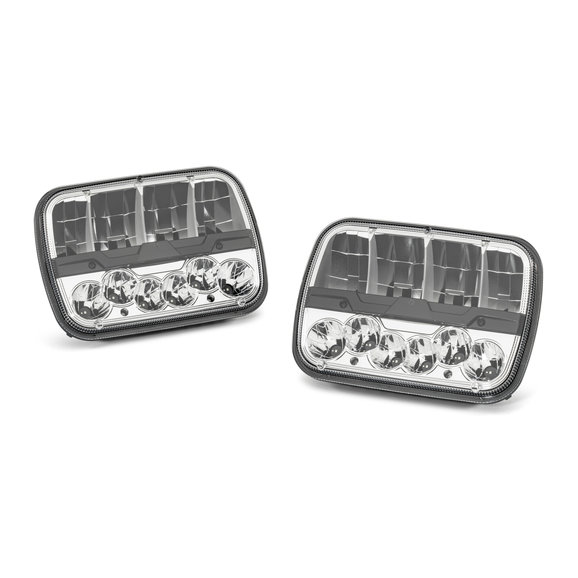 The TACTIK 5"x7" LED Headlights will turn darkness into daylight while driving at night in your Wrangler YJ or Cherokee XJ. These headlights provide a brighter, crisper and whiter light output, closer to the color temperature of daylight, dramatically improving light projection distance and overall visibility. Replacing your factory incandescent headlights with some crisp clear LED headlamps is a safe way to reduce eye fatigue during nighttime driving. Constructed with a polycarbonate housing that is ribbed for cooling and crystal clear polycarbonate lenses for optimum protection against impacts. The bulb-free headlight design is impervious to damage from shock and vibration. These kits are plug-n-play and require no modification and install in 20-30 minutes. TACTIK Headlamps are DOT approved for highway use in all 50 states. Sold in pairs.
