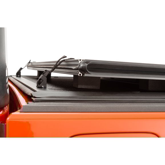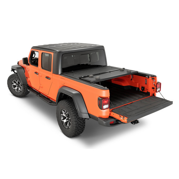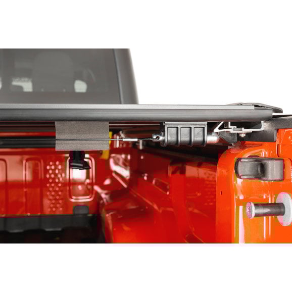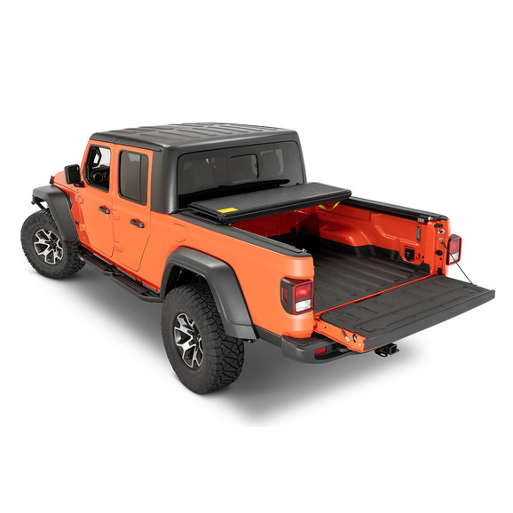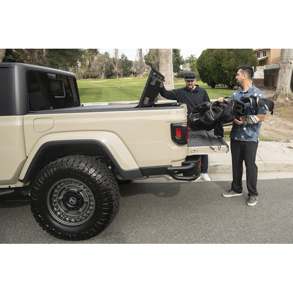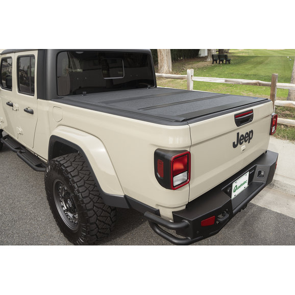 The TACTIK Low Profile Hard Tri-Fold Tonneau Cover is exclusively designed for Jeep Gladiator JT to provide a sleek, stylish look. This premium tonneau is UV and cold-resistant for years of trouble-free use. Durable material helps protect any bed cargo from moisture, dirt, or any other elements your Gladiator may face. Tonneau mounts to the truck bed rail using a unique clamping system, theft protection rail, and latch design. A simple release mechanism can be operated with one finger. The hard panel is scratch resistant and provides maximum theft protection for all bed cargo as the cover will automatically lock when the last fold closes and you lock the tailgate. Hard panels are rated up to 500 lbs of evenly distributed weight. Tonneau does require assembly, but no additional tools or drilling is needed. Features a five-year warranty.