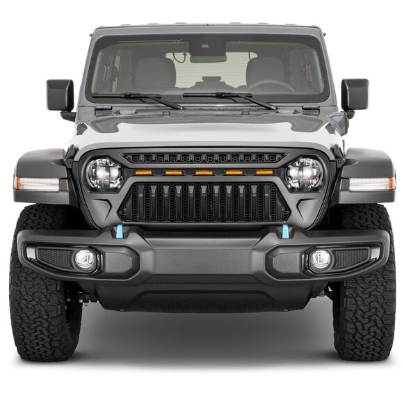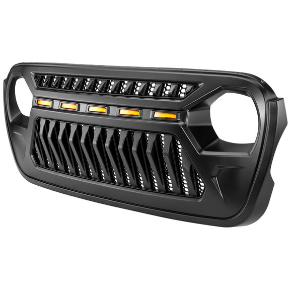 Elevate your Jeep’s style and visibility with the TACTIK Reef Shark Grille with Amber LED Lighting for Jeep Wrangler JL & Gladiator JT models. This bold aftermarket grille combines aggressive design with integrated amber LED accent lighting for a head-turning appearance both day and night. The sinister styling, inspired by military-grade performance, adds serious attitude to your front end while improving safety by enhancing visibility during low-light conditions or off-road excursions. It's the perfect blend of function and form, giving your JL or Gladiator an unmistakable presence on any trail or city street.