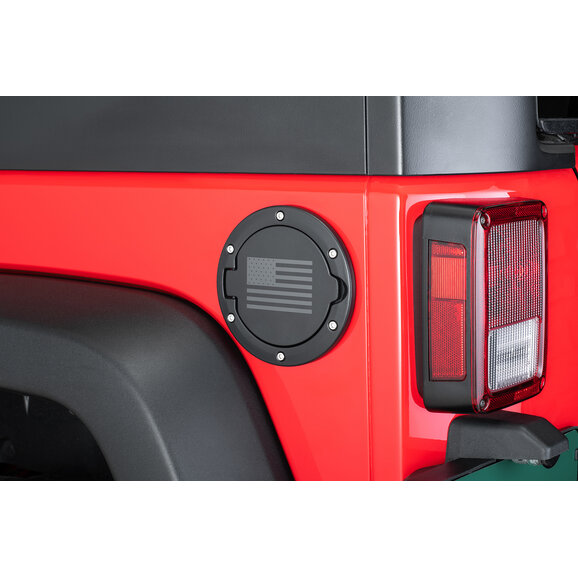 And to further personalize your Jeep, add the Tactik Billet Aluminum Fuel Door for Jeep Wrangler JK. Choose between a patriotic American Flag door, or a sleek non-locking door, all choices are sure to make your Jeep stand out. Constructed of heavy-duty corrosion resistant billet aluminum, these fuel doors are sure to last. The patriotic look of the American Flag fuel door shows off the famous stars and stripes. The non-locking fuel door offers a sleek look that finishes off the side of your Jeep. The durable textured black powder coat is sure to last in the worst conditions as well as the occasional drop of fuel landing on the finish. The lockable fuel door option comes with two keys, one to keep in the Jeep and one to keep in the house.