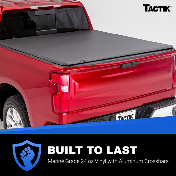 Sleek & Durable Design: The TACTIK tri-fold soft vinyl truck bed cover is designed with a sleek look that compliments the lines of your truck and is built to withstand the elements with its heavy-duty aluminum frames and marine grade vinyl.