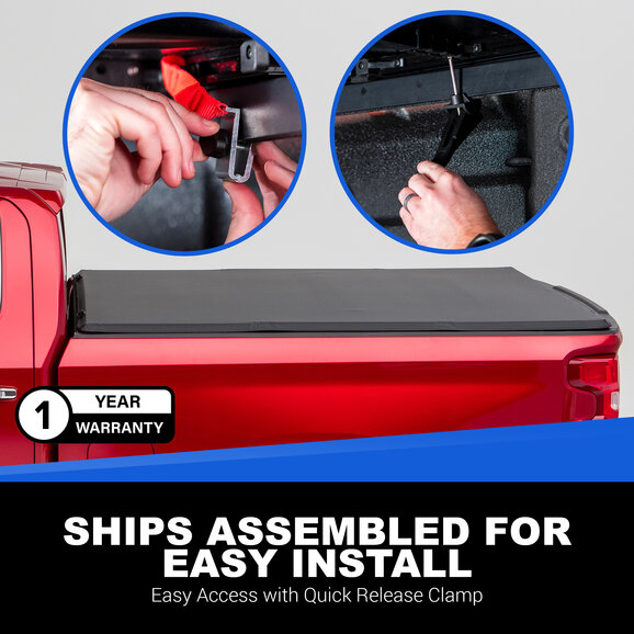 Easy to Install: This soft-folding tonneau cover comes fully assembled and can be installed quickly thanks to its clamp-on design. No drilling or modifications are required.