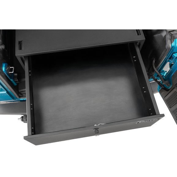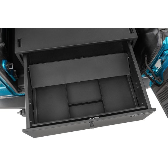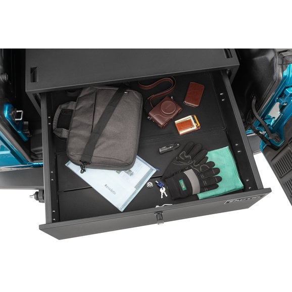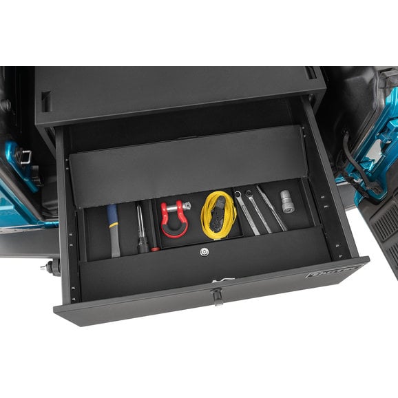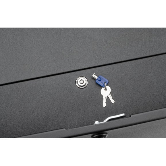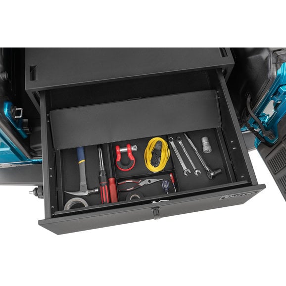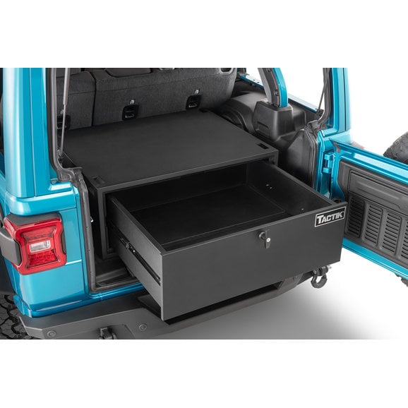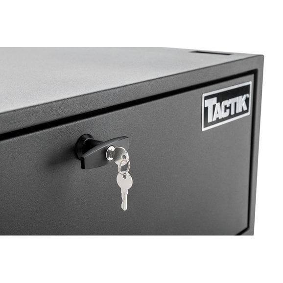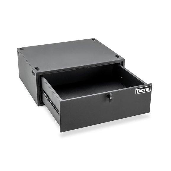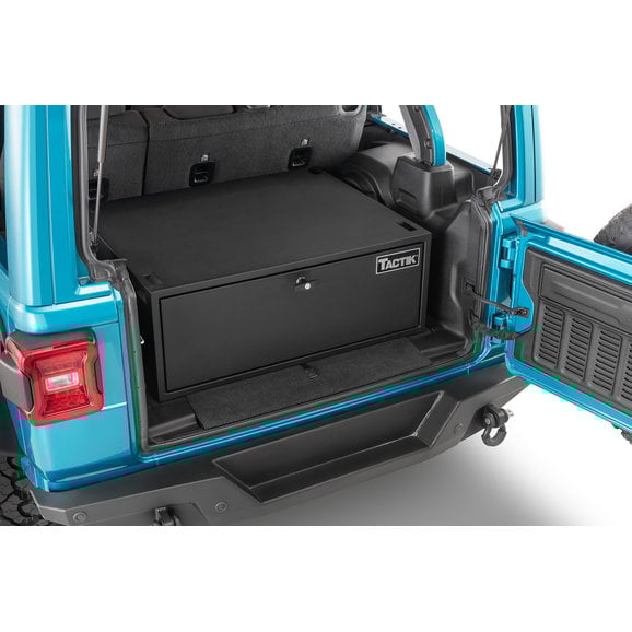 TACTIK's Security Enclosure for Wrangler JK/JL smartly re-invents your Jeep's cargo area into a secure, lockable compartment that can safely hold all your important valuables. Its spacious internal top compartment smoothly slides out to reveal a large storage area complete with a divided, non-slip pad to protect your goods from damage. This interior pad also pulls up to reveal a second, hidden lockable compartment for extra cargo ability. The enclosure is finished with an eye-catching black powder coating that enhances durability and provides years of trouble-free use. Engineered with four built-in strap-down locations to maximize storage space and includes two security keys as well as a one-year limited warranty.