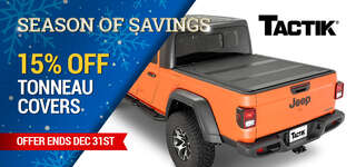 The TACTIK Tri-Fold Soft Vinyl Tonneau Cover is designed with a sleek look that compliments the lines of your Gladiator JT and is built to withstand the elements with its heavy-duty aluminum frames and 24oz marine-grade vinyl. This Gladiator tonneau cover provides excellent protection from the elements with its superior integrated perimeter and corner seals that keeps rain, snow, and dust out of the bed. The soft tri-fold truck bed cover features horizontal aluminum crossbars for stability and to ensure a snug wrinkle-free fitment. The heavy-duty frames are powder coated to offer years of use and durability. Fold the cover towards the cab to give you full bed access for hauling large items. The provided buckle clips allow you to secure your cover fully open for driving. The easy-to-install soft-folding tonneau cover comes fully assembled and can be installed quickly thanks to its clamp-on design. No drilling or modifications are required.