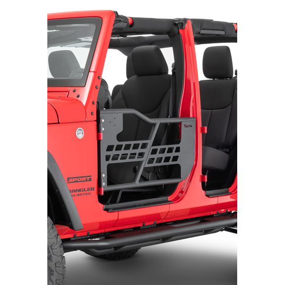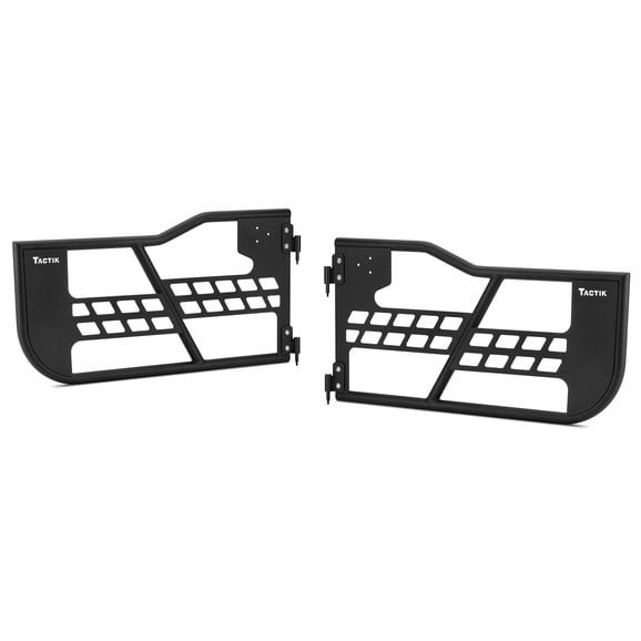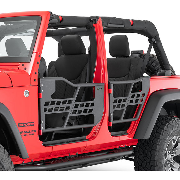 The TacTik JK Tube Doors are the perfect option if you love to remove your vehicle's top, but also want to remove the factory doors on warm sunny days. These TacTik JK Tube Doors allow you to feel the open air, while keeping you safe and secure inside your Jeep. Constructed from heavy-duty 1.25-inch, 14-gauge tubing, these doors will stand up to anything the trails throw at you while allowing a better perspective of angles when approaching or descending an obstacle. The textured black powder coat finish looks great with any color vehicle and provides long-lasting durability.