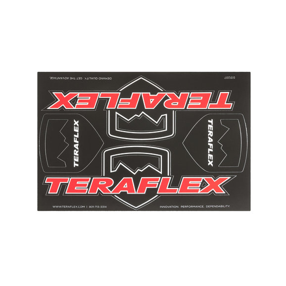 Get 4 awesome stickers from this one sheet! This sticker sheet includes two TeraFlex logo & badge stickers (approximately 7.75" w x 2.75" h) and two bage stickers (approximately 2.5" w x 2.5" h). These stickers are made from 4mil vinyl with a permanent adhesive and silkscreened for superior durability and vibrant color quality.