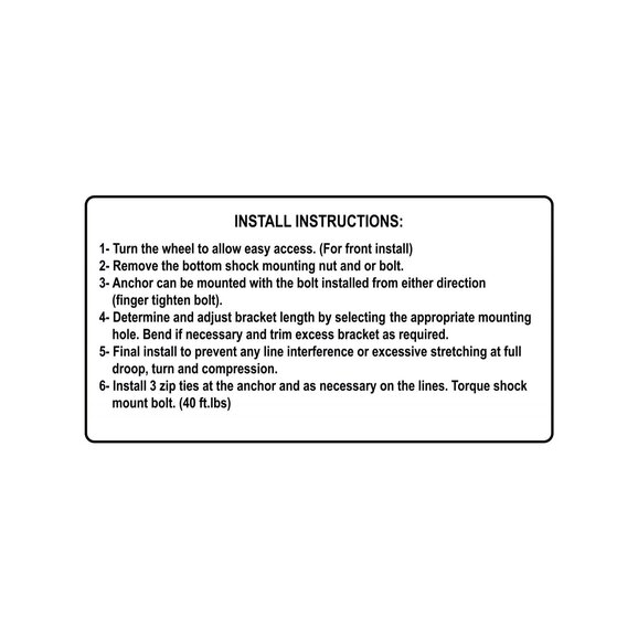 Install: Installation is a breeze by using the lower shock mount bolt.