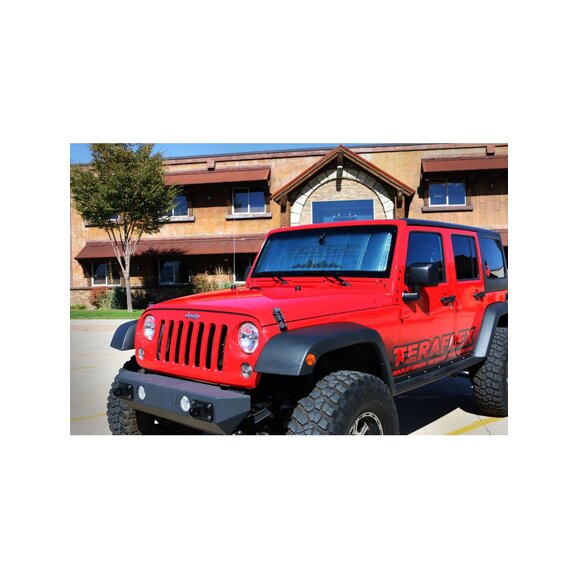 The Teraflex Windshield Shade is the perfect solution to reduce interior temperatures of your Jeep Wrangler JK while it is parked.