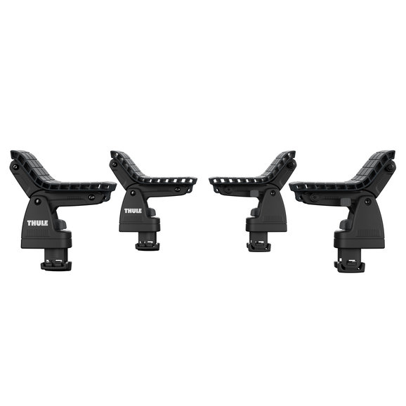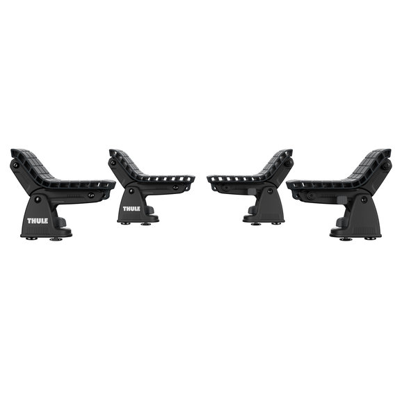No matter how hard you try, that kayak won't fit in the back of your Wrangler. OK you know that, so now what? Thule's DockGrip is a versatile solution that's fast and easy to install. It consists of four padded support saddles that will pivot to contour a wide variety of hull shapes and sizes for kayaks and stand-up paddle boards. Simply adjust the angle setting lever to fit the curve of your kayak and secure it with the included 15' tie down straps. The DockGrip will work with a variety of Thule rack systems, round bars, and most factory rack or bar systems. Accommodates kayaks and SUPs up to 35.5" wide.