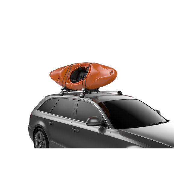 Here is the ideal rack for your Jeep to haul one or two kayaks! The Thule Hull-a-Port XT is a versatile kayak rack that is lockable and can hold one or two kayaks. The dual position design can act as a J-cradle or a two-boat stacker. When not in use the mounts fold flat. Integrated StrapCatch helps stow remaining straps. Thule's One Key System lock cylinders (sold separately) allow the mounts to lock to load bars. Fully assembled out of the box - just open, remove, install, mount your kayak(s) and straps, then hit the road - then the water! Universal design fits most types of load bars up to 80mm wide including WingBar Evo, AeroBlade, AeroBlade Edge, SquareBar, and most factory crossbars. Supports one vessel up to 75 lbs or two vessels with a combined weight of up to 130 lbs.