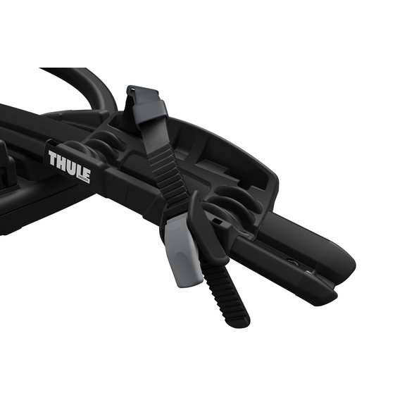 You'll immediately notice the ProRide's support bar and claw that balances your bike as you rest it into the rack. Turn the support bar's torque limiter dial to eliminate the guesswork and ensure that the proper amount of force is applied for safe and secure mounting. The claw features soft rubberized pads that prevent damage, compress, and contour to your bike's frame as you tighten the claw into place. Your front and rear wheels rest in the specially designed holders and are fastened with the integrated quick-release ratcheting straps. Thule has even made the ProRide capable of being switched from one side of your Wrangler JK's roof to the other by hand and without the use of tools.