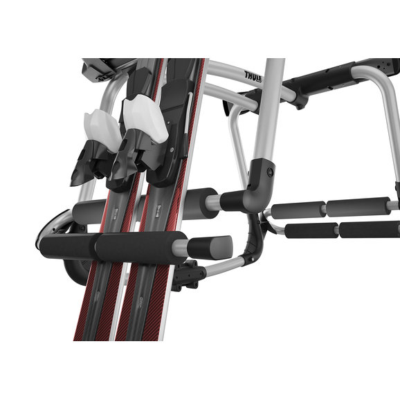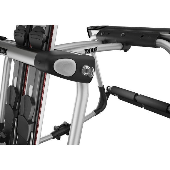As Jeep owners, we are adventurous not only in summer but also during the winter months. With the Thule Tram you can convert your summer bike rack to haul skis and/or snowboards! This rack uses soft rubber arms that grip securely without leaving scratches. Designed to easily open and close while wearing gloves. Two one-key locks are included to securely lock skis and snowboards to the rack. The maximum capacity for Class 1 hitches is 4 pairs of skis or 2 snowboards. The maximum capacity for Class 2 hitches (Most Jeep hitches) is 6 pair of skis or 4 snowboards. Fits most Thule and other brand hitch bike racks including Apex/Vertex and SpareMe. Will not fit on Thule Helium hitch racks. Not intended for off-road use.