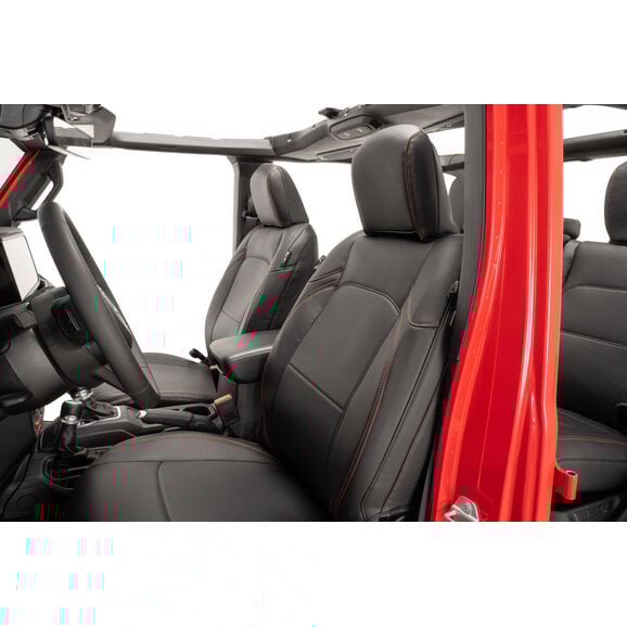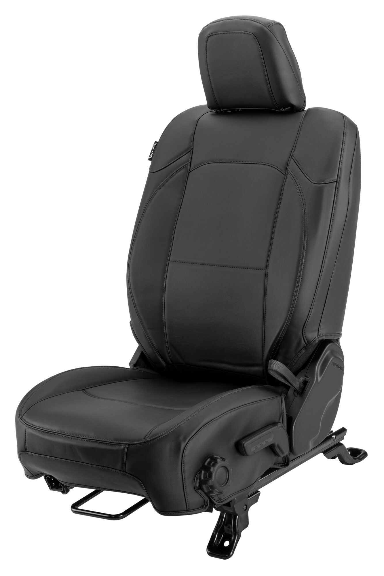 Protect your Gladiator JT's seats while adding style to your Jeep's interior with the Tru-Fit Eco Leather Seat Covers, designed to deliver all-season protection, superior comfort, and a refined look. Crafted from breathable eco leather with a soft-touch finish, these seat covers offer a luxurious feel while standing up to the demands of daily driving, off-road adventures, and changing weather conditions. Whether it's hot summer days or muddy trail rides, your seats stay clean, protected, and comfortable year-round.
