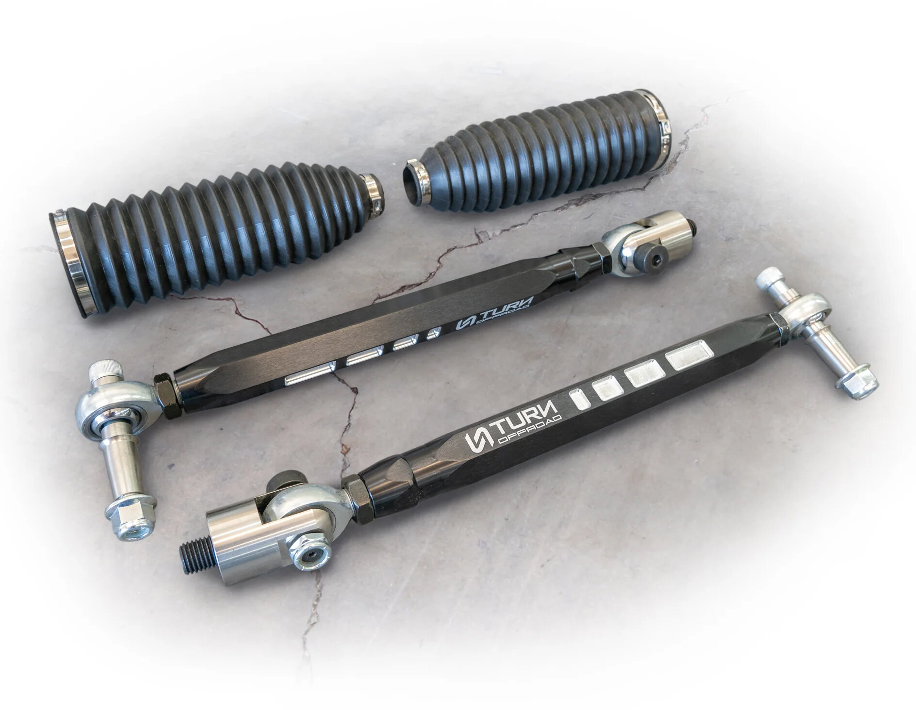 The Turn Offroad Billet Tie Rods for the Ford Bronco are built for drivers who push past factory limits and demand steering components that hold up under real trail pressure. Precision‑machined from billet material, these tie rods are designed to deliver increased strength and confidence when navigating rocks, ruts, and uneven terrain. Engineered as a direct‑fit solution for the current‑generation Bronco, they provide tighter steering control while standing up to larger tires and aggressive off‑road use. Whether crawling technical trails or blasting through open desert, Turn Offroad billet tie rods are built to keep steering response consistent when it matters most.