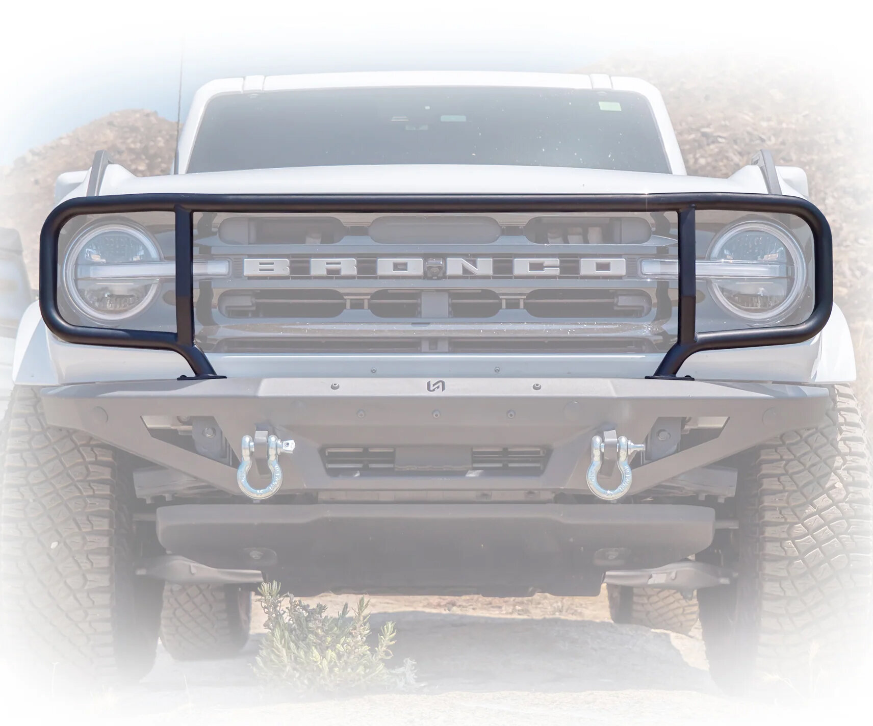 The Ford Bronco Grill Guard is designed to provide dependable front‑end protection for Bronco owners who spend time on rugged trails and unpredictable terrain. Built with off‑road functionality in mind, this grill guard helps shield the grille and upper front area from branches, debris, and light trail impacts encountered during outdoor exploration. Its streamlined design complements the Bronco’s bold front profile while maintaining clear airflow and visibility. Engineered for proper fitment, the grill guard adds practical protection without overwhelming the vehicle’s factory design, making it a solid choice for trail‑focused driving.