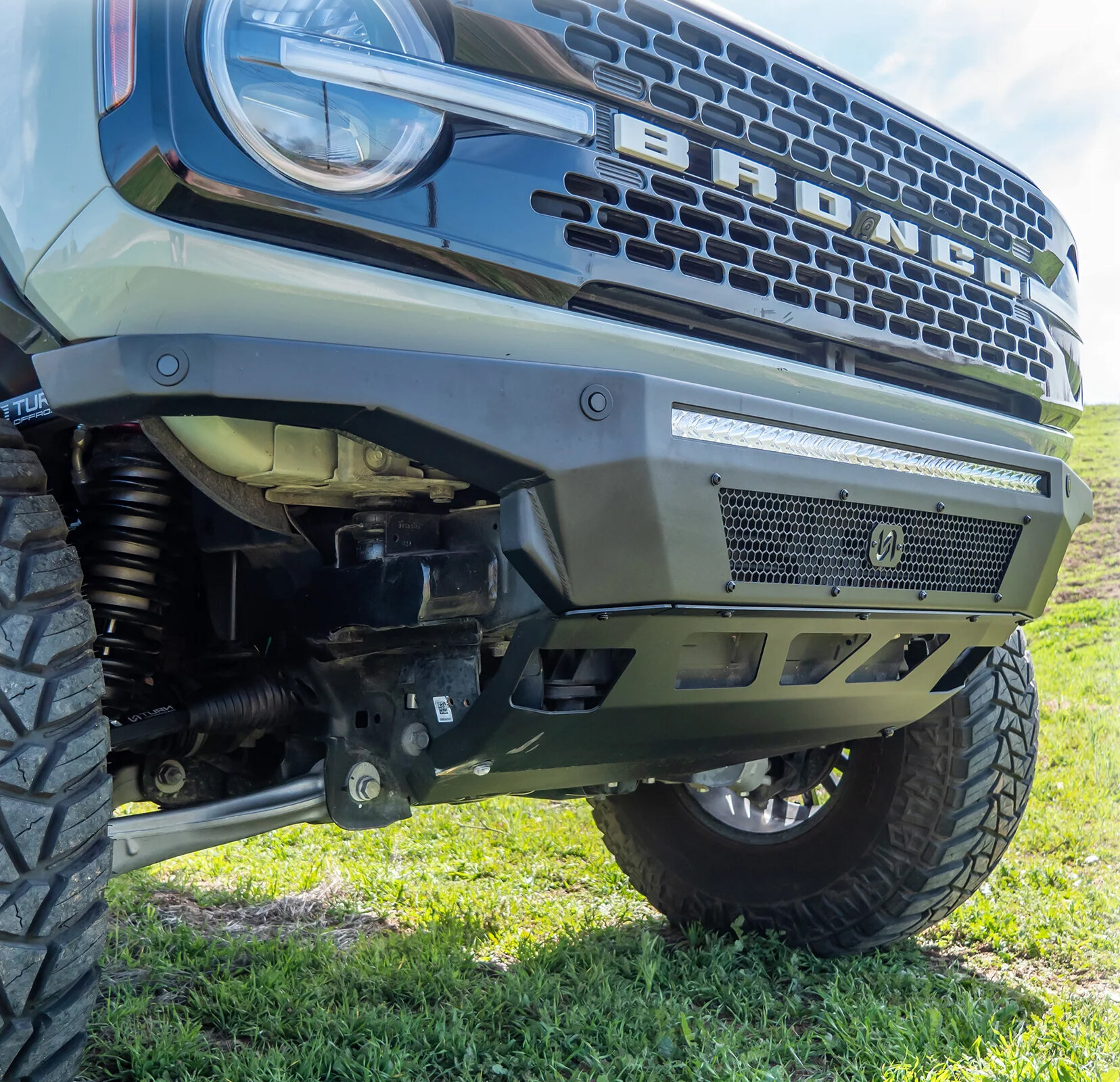 The Turn Offroad Hyperlyte Front Bumper & Skid Plate for Ford Bronco is built for drivers who push their Bronco beyond paved roads and into demanding terrain. Designed with a lightweight yet trail‑ready structure, this front bumper delivers critical front‑end protection while maintaining a balanced feel for technical off‑road driving. The integrated skid plate shields vital components from rocks, ledges, and unexpected obstacles, giving Bronco owners the confidence to tackle aggressive trails without hesitation. Engineered for precise fitment on the Ford Bronco, the Hyperlyte bumper blends functional design with a bold, purpose‑driven look that supports recovery gear and trail accessories, making it an ideal choice for serious off‑road use.