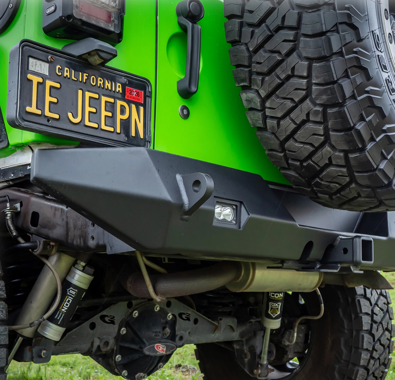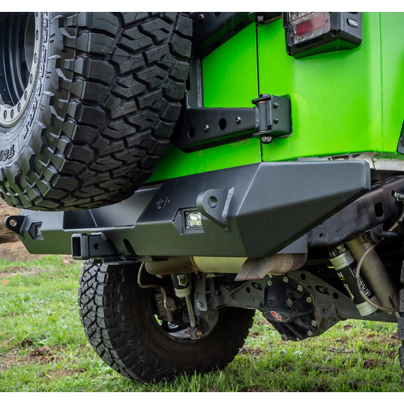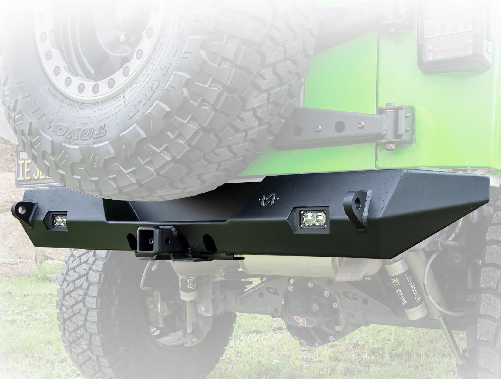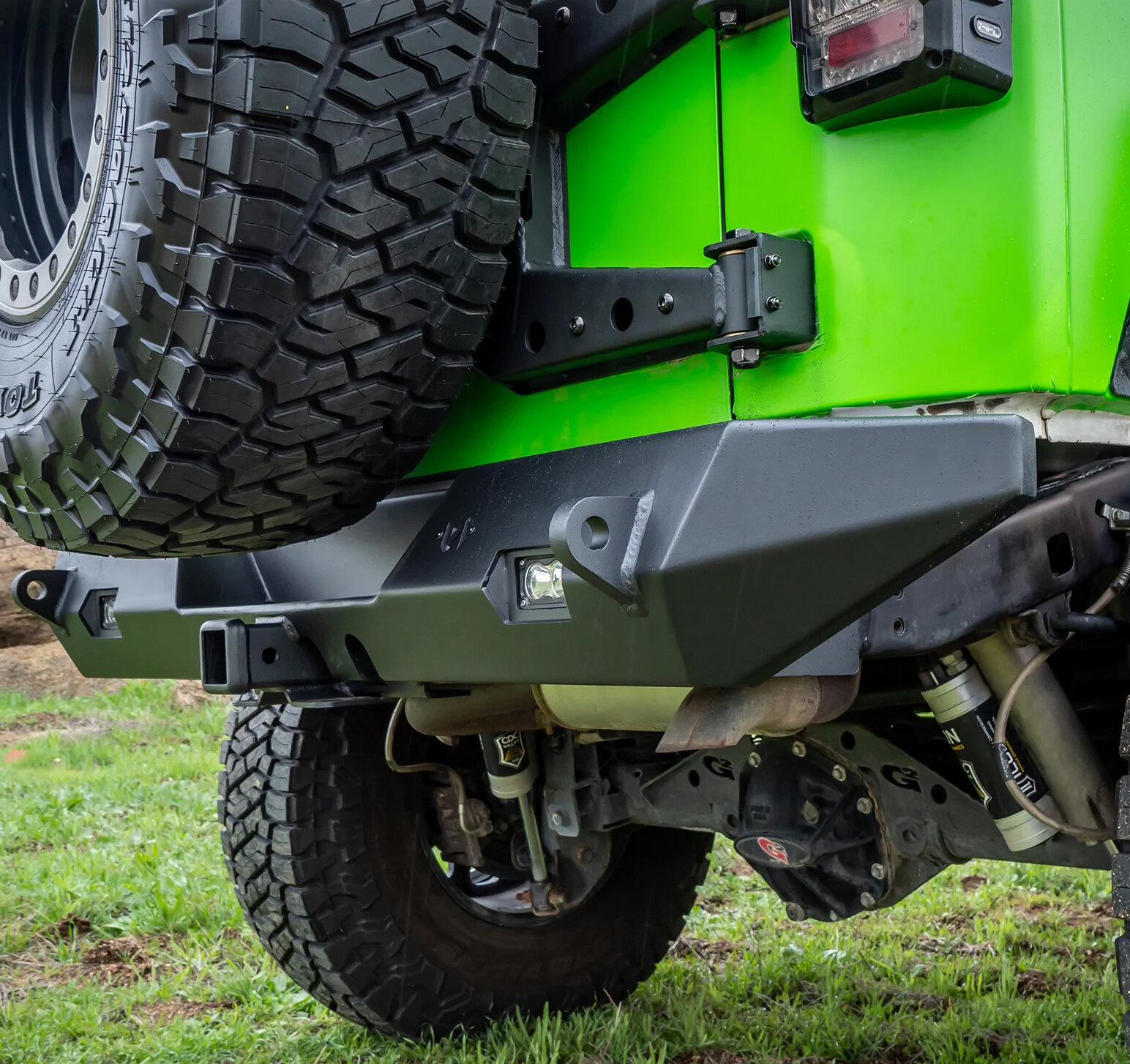 The Turn Offroad Rear Bumper with LED Pod Lights and Hitch Receiver for the Jeep Wrangler JK (2007–2018) is built for off-road enthusiasts who demand rugged durability and functional upgrades. Crafted from 3–5 mm laser-cut steel with internal reinforcement, this bumper offers superior strength while maintaining a slim, high-clearance profile for improved departure angles on tough trails. It features dual integrated LED cube lights for enhanced visibility during night driving, reversing, or trail navigation, and a fully welded 2″ Class III hitch receiver for towing and accessory mounting. With dual heavy-duty D-ring recovery points, a corrosion-resistant Tri-Guard powder coat finish, and a bolt-on installation that requires no cutting or drilling, this bumper combines aggressive styling with practical performance for serious Jeepers.