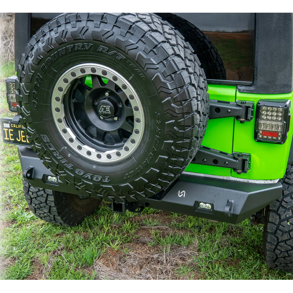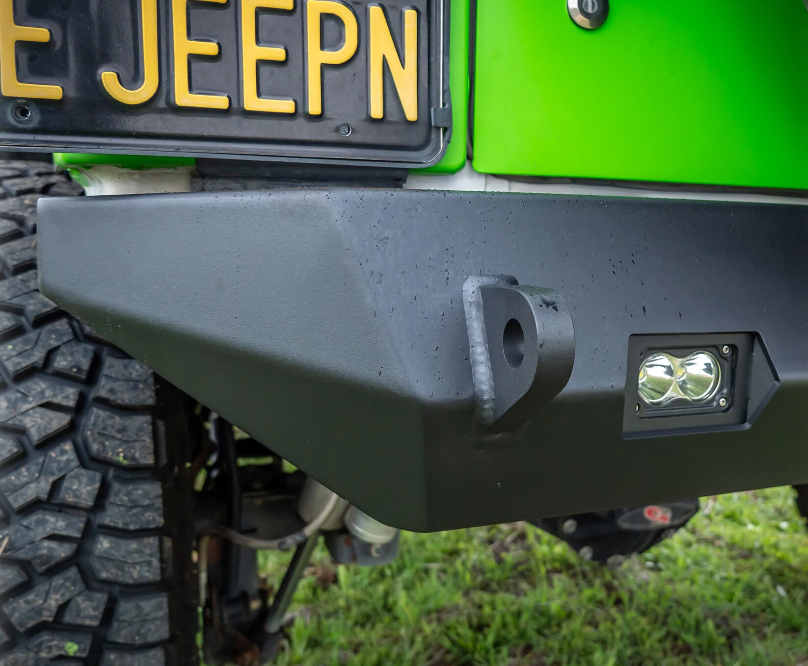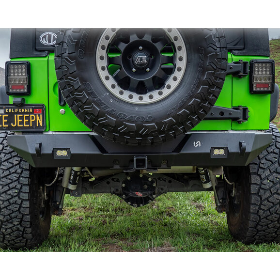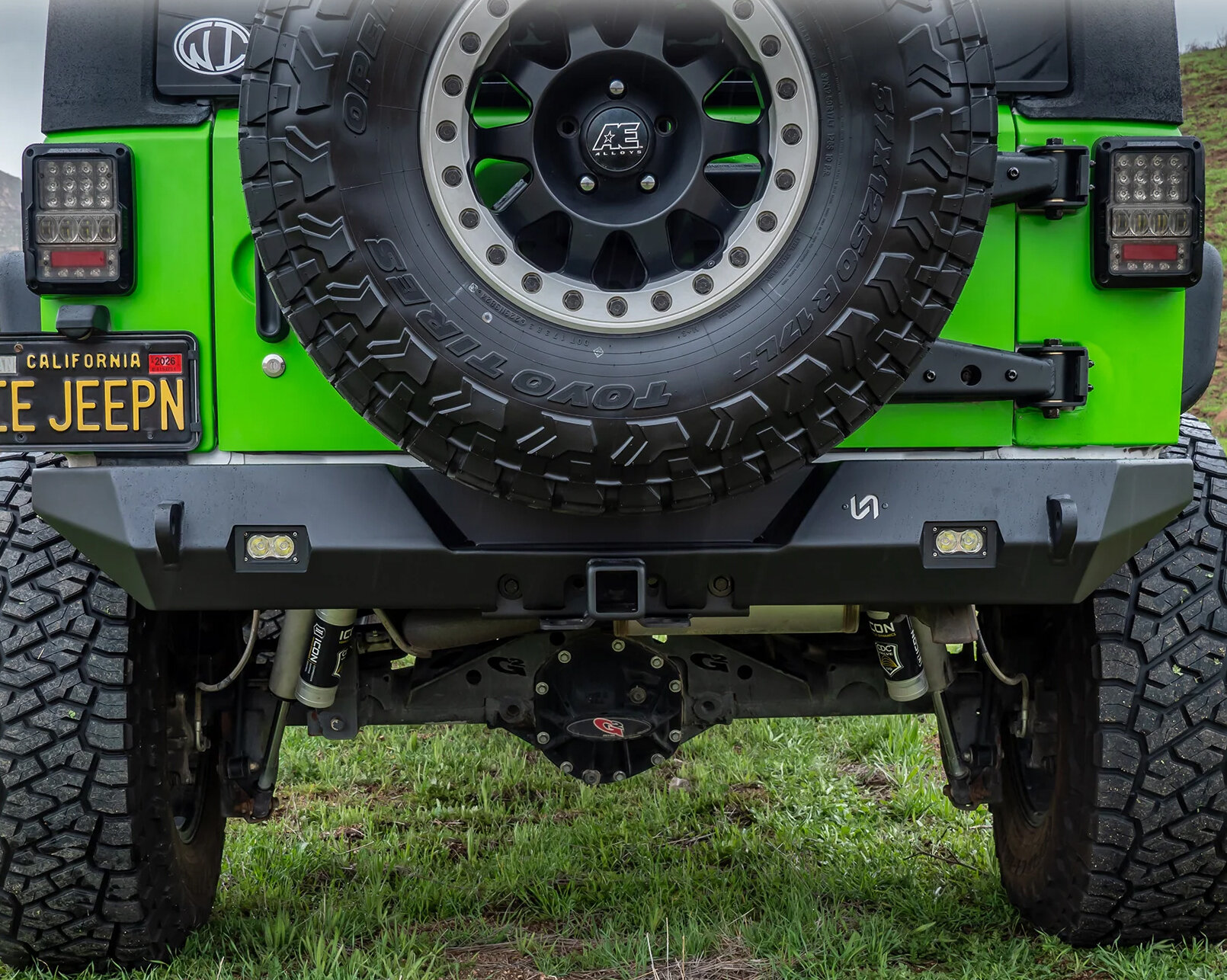 The Turn Offroad Rear Bumper with LED Pod Lights and Hitch Receiver for the Jeep Wrangler JK (2007–2018) is built for off-road enthusiasts who demand rugged durability and functional upgrades. Crafted from 3–5 mm laser-cut steel with internal reinforcement, this bumper offers superior strength while maintaining a slim, high-clearance profile for improved departure angles on tough trails. It features dual integrated LED cube lights for enhanced visibility during night driving, reversing, or trail navigation, and a fully welded 2″ Class III hitch receiver for towing and accessory mounting. With dual heavy-duty D-ring recovery points, a corrosion-resistant Tri-Guard powder coat finish, and a bolt-on installation that requires no cutting or drilling, this bumper combines aggressive styling with practical performance for serious Jeepers.