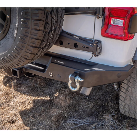 Upgrade your Wrangler JL with the Turn Offroad Rear Bumper with Receiver Hitch, engineered to elevate both form and function. Specifically designed for Jeep Wrangler JL vehicles, this bumper fuses aggressive high-clearance styling with rugged durability. Crafted from precision laser-cut 3–5 mm steel and reinforced internally, it provides extra rear protection while reducing hang-ups on challenging terrain. The fully welded Class-III 2″ hitch receiver seamlessly integrates towing accessories or light-duty trailers—no drilling or extra modifications required. Dual one‑inch-thick D‑ring tabs with CNC reinforcements ensure secure recovery capabilities, and a triple-layer Tri-Guard powder-coat finish resists corrosion, UV rays, and trail wear. With clean, flush-mount ends for seamless body fitment and straightforward bolt-on installation using factory knockouts, this bumper maintains your Jeep’s aesthetic while enhancing its off-road readiness.