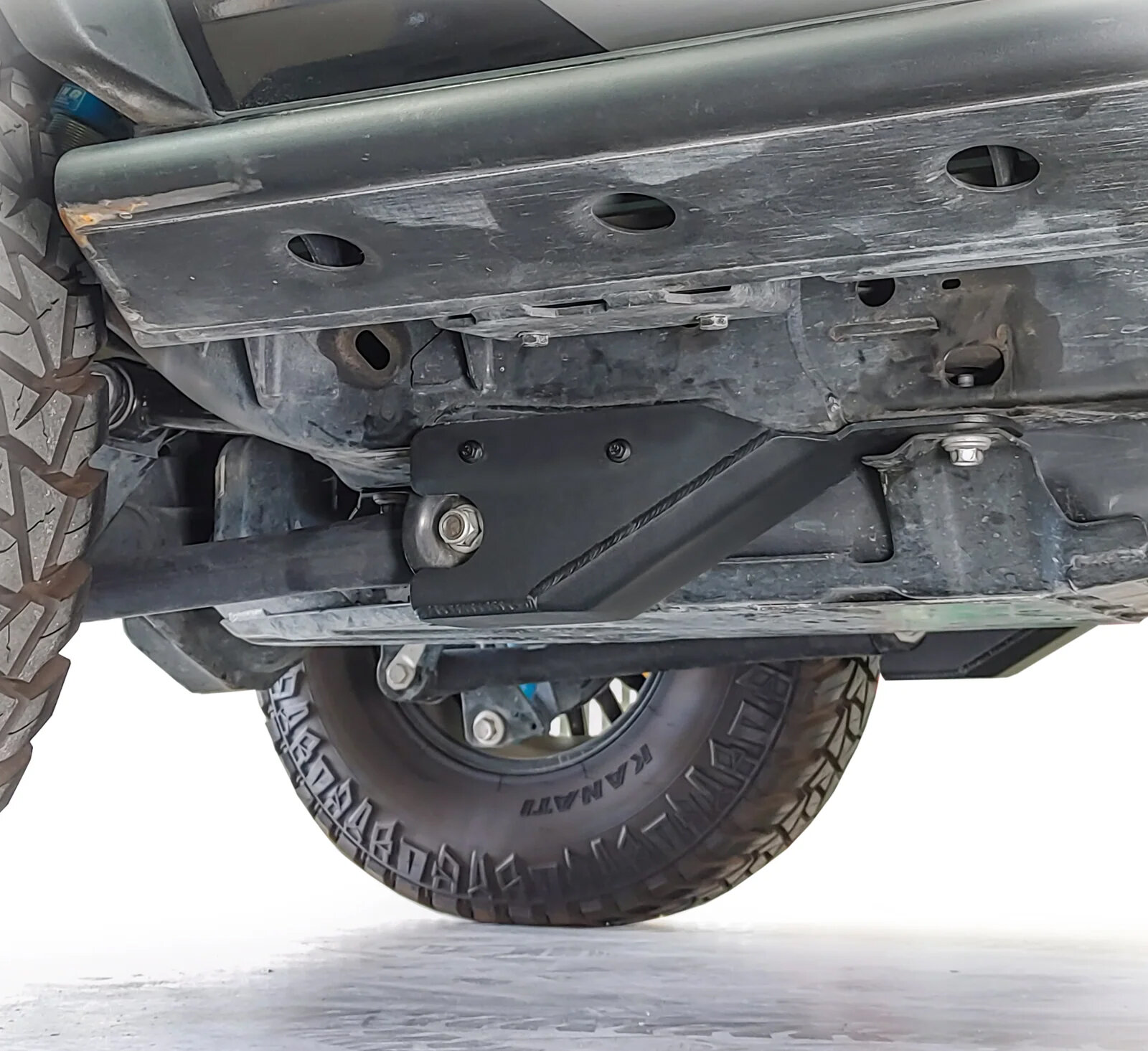 The Turn Offroad Rear Lower Control Arm Skid Plates for Ford Bronco 4-Door are built to protect your Bronco’s suspension from the toughest off-road conditions. Crafted from heavy-duty steel, these skid plates shield the rear lower control arm mounts from rocks, stumps, and trail debris, preventing costly damage during aggressive adventures. Designed specifically for the Ford Bronco 4-Door, they offer a precise fit and easy installation using factory mounting points. With a durable powder-coated finish for corrosion resistance, these skid plates combine strength, reliability, and performance—making them an essential upgrade for any serious off-road enthusiast.