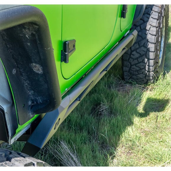 Constructed from heavy-duty steel, these rock sliders provide a solid barrier against rocks, stumps, and trail debris, preventing costly body damage during extreme off-road adventures. Their precision fit ensures seamless installation and a clean, integrated look that complements your Jeep’s rugged design. Plus, the textured finish adds corrosion resistance and grip for added functionality.