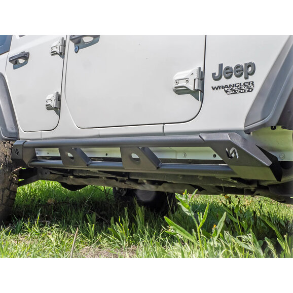 Constructed from heavy-duty steel, these rock sliders deliver uncompromising strength and long-lasting performance in extreme conditions. Their precision fit ensures easy installation and a clean, integrated look that complements your Jeep’s aggressive stance. Finished with a corrosion-resistant textured coating, they offer added durability and grip for functionality on and off the trail.