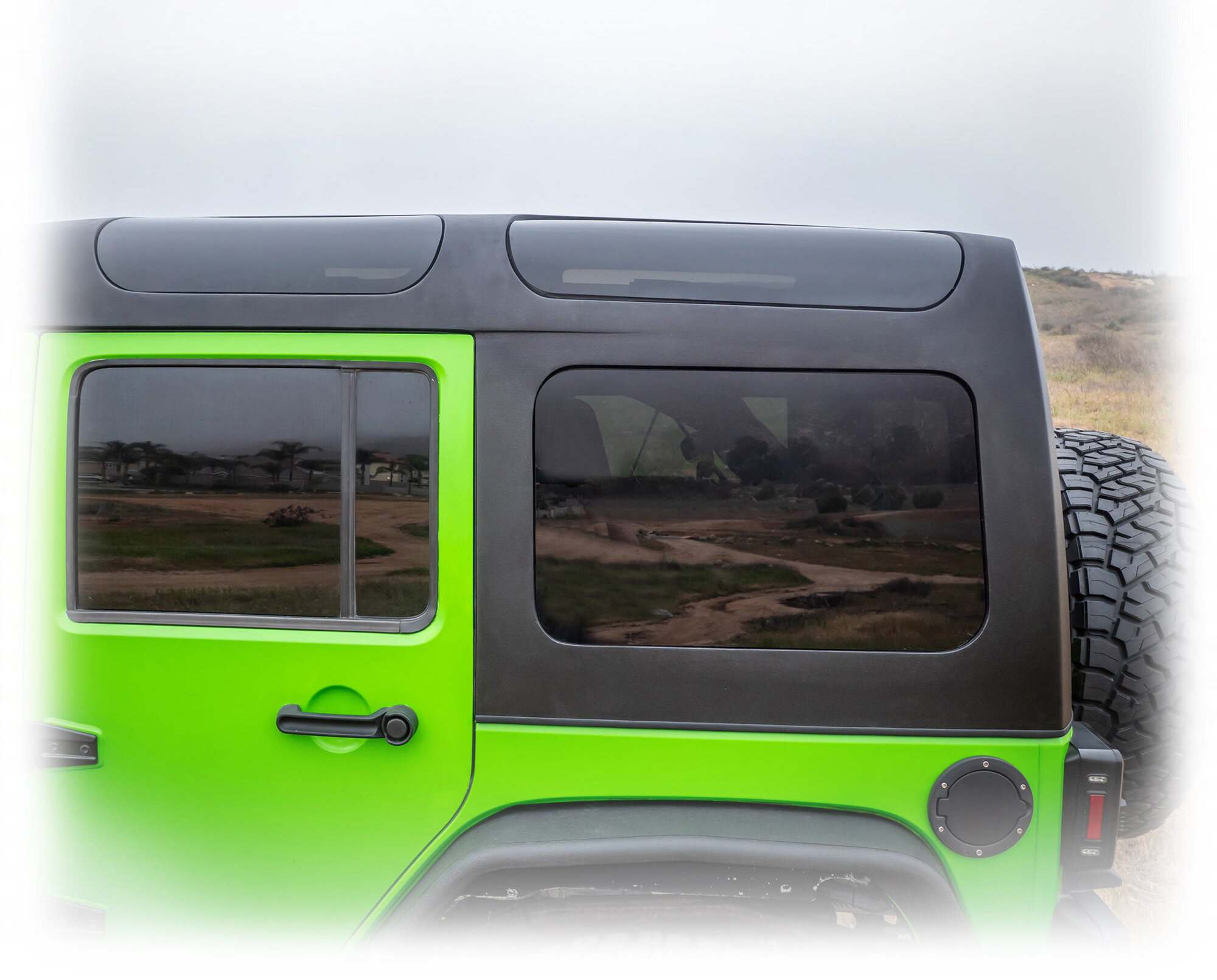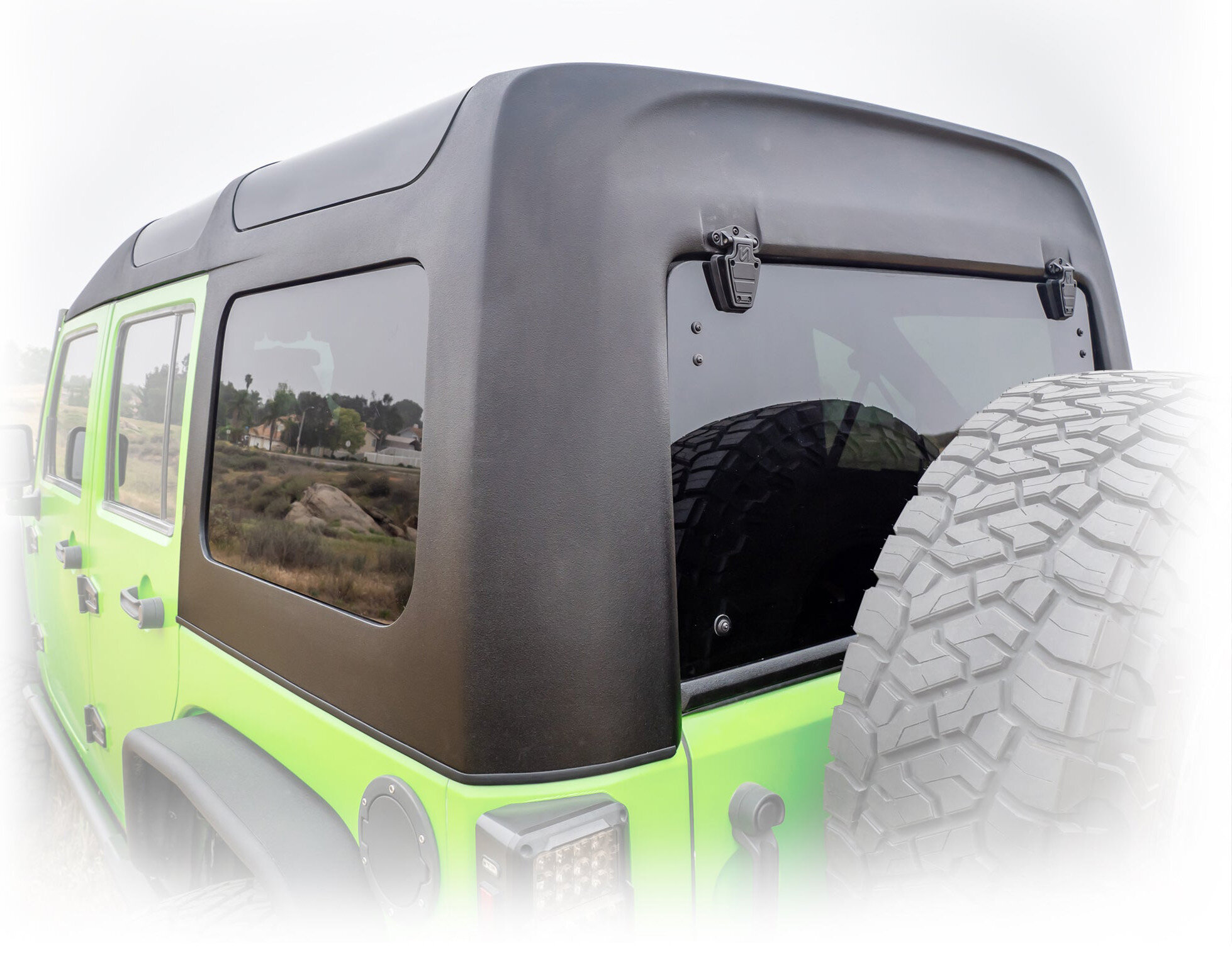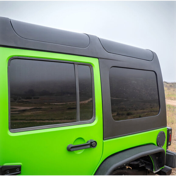 The Turn Offroad Safari Style Hardtop for the 2007–2018 Wrangler JK delivers an elevated blend of form and function, designed to enhance both on- and off-road performance. Its seamless one-piece reinforced fiberglass shell boosts structural rigidity and durability, while the integrated overhead skylights flood the cabin with natural light, creating an open-air ambiance without sacrificing protection. Deep-tinted, DOT-approved safety glass on the sides and rear offers privacy, heat control, and a sleek aesthetic, complemented by a UV-stable gel coat exterior that resists sun damage and remains ready for paint matching. Inside, a fully finished, insulated black headliner minimizes road noise and thermal transfer, delivering temperature comfort and a premium feel. Installation is straightforward using factory mounting points and upgraded hardware—no cutting or drilling required—while the product is backed by a lifetime limited warranty on materials and workmanship.