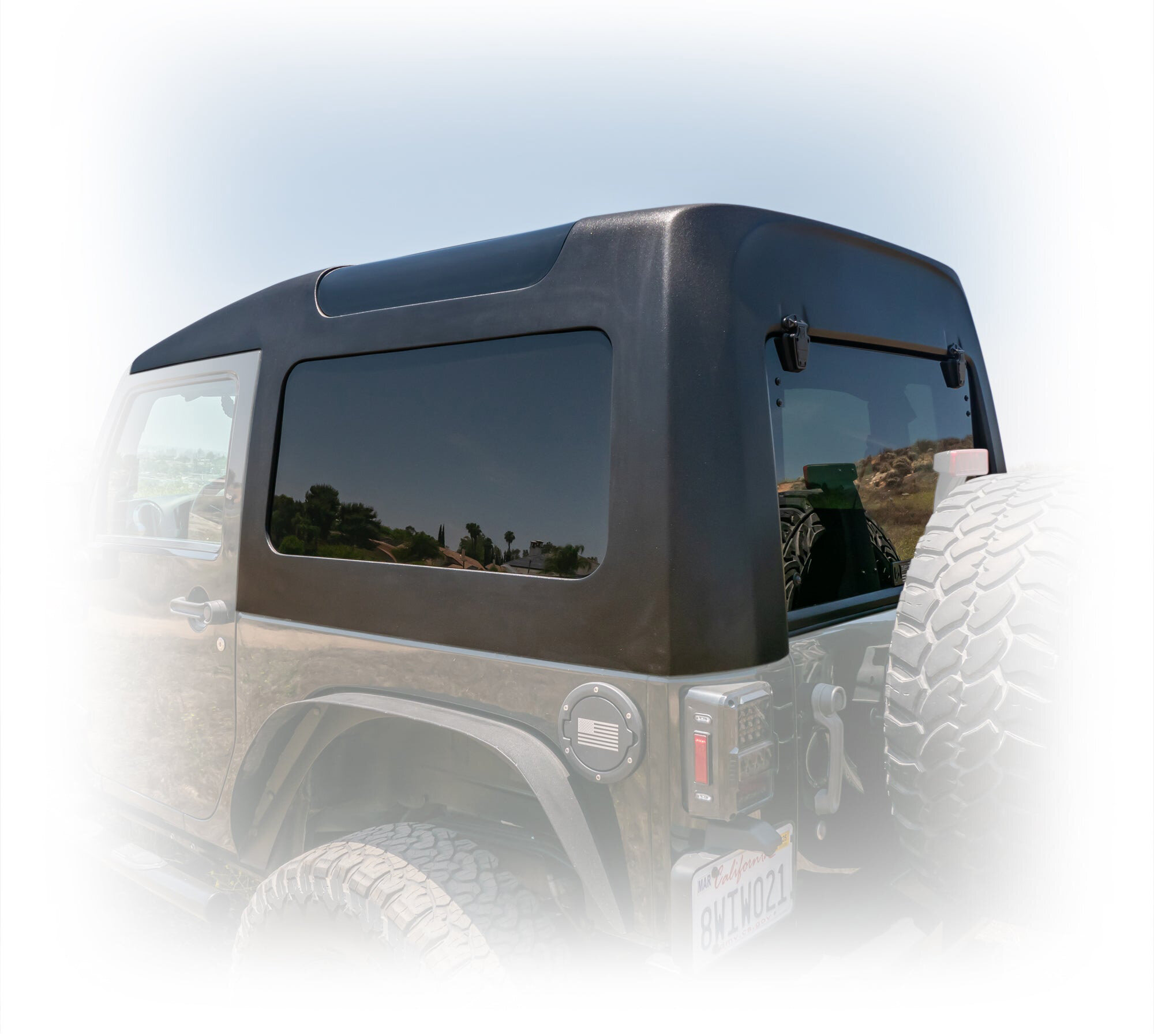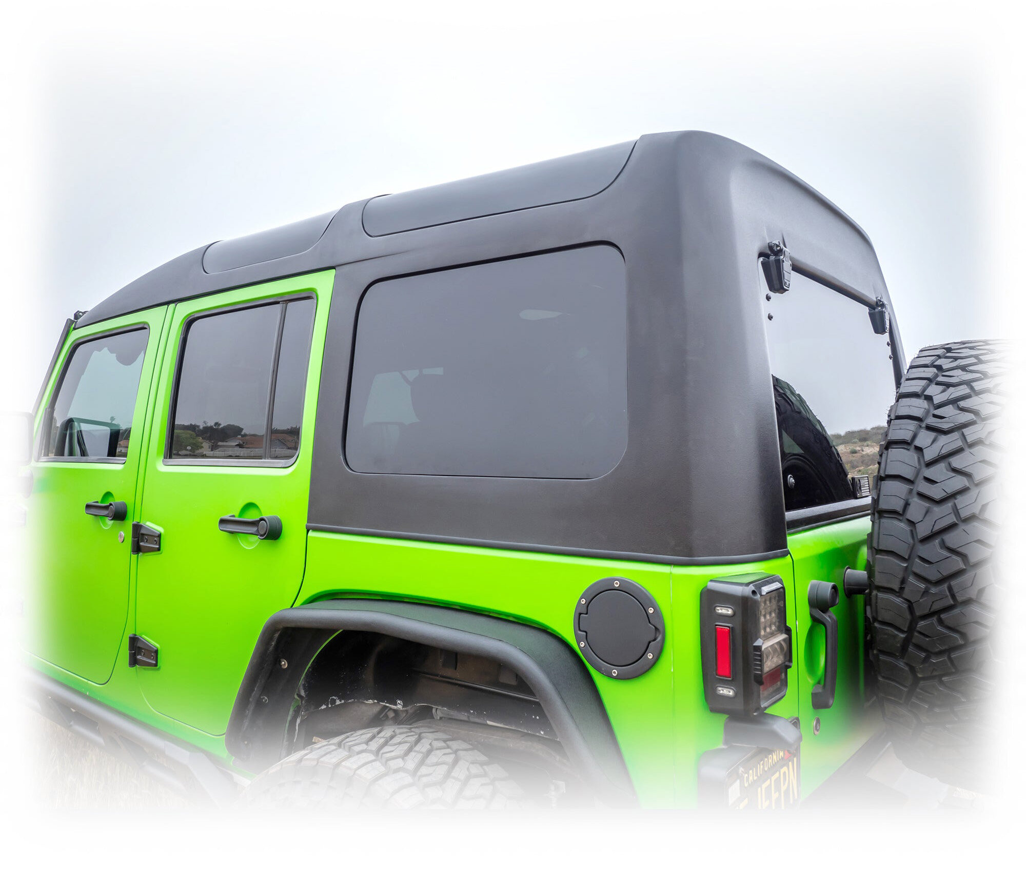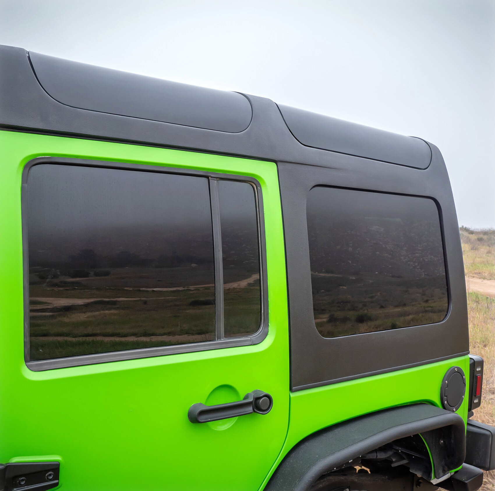 The Turn Offroad Safari Style Hardtop for the 2007–2018 Wrangler JK delivers an elevated blend of form and function, designed to enhance both on- and off-road performance. Its seamless one-piece reinforced fiberglass shell boosts structural rigidity and durability, while the integrated overhead skylights flood the cabin with natural light, creating an open-air ambiance without sacrificing protection. Deep-tinted, DOT-approved safety glass on the sides and rear offers privacy, heat control, and a sleek aesthetic, complemented by a UV-stable gel coat exterior that resists sun damage and remains ready for paint matching. Inside, a fully finished, insulated black headliner minimizes road noise and thermal transfer, delivering temperature comfort and a premium feel. Installation is straightforward using factory mounting points and upgraded hardware—no cutting or drilling required—while the product is backed by a lifetime limited warranty on materials and workmanship.