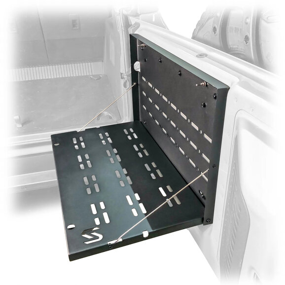 The Turn Offroad Tailgate Table for Ford Bronco is the ultimate accessory for outdoor enthusiasts and overlanders who need a practical workspace on the trail. Designed for a perfect fit on the Bronco’s tailgate, this heavy-duty table provides a sturdy surface for cooking, gear prep, or organizing essentials during your adventures. Built from premium steel with a corrosion-resistant finish, it folds flat when not in use, maximizing space without sacrificing functionality. With integrated slots for securing gear and a quick-deploy design, this tailgate table combines rugged durability with convenience, making it an essential upgrade for any Bronco owner who loves camping, off-roading, or tailgating.