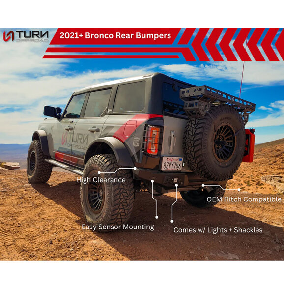 The Turn Offroad Zero Series Rear Bumper for the Ford Bronco is built for drivers who demand dependable protection and trail‑ready function at the rear of their vehicle. Designed with a clean, low‑profile layout, this rear bumper helps defend the Bronco’s rear end from trail obstacles, rocks, and uneven terrain encountered during off‑road travel. Its purpose‑driven design supports recovery scenarios while maintaining rear clearance, making it well‑suited for technical trails and backcountry exploration. Engineered specifically for the Ford Bronco platform, the Zero Series rear bumper delivers a precise fit that integrates smoothly with the vehicle’s factory lines while staying focused on real‑world off‑road use.