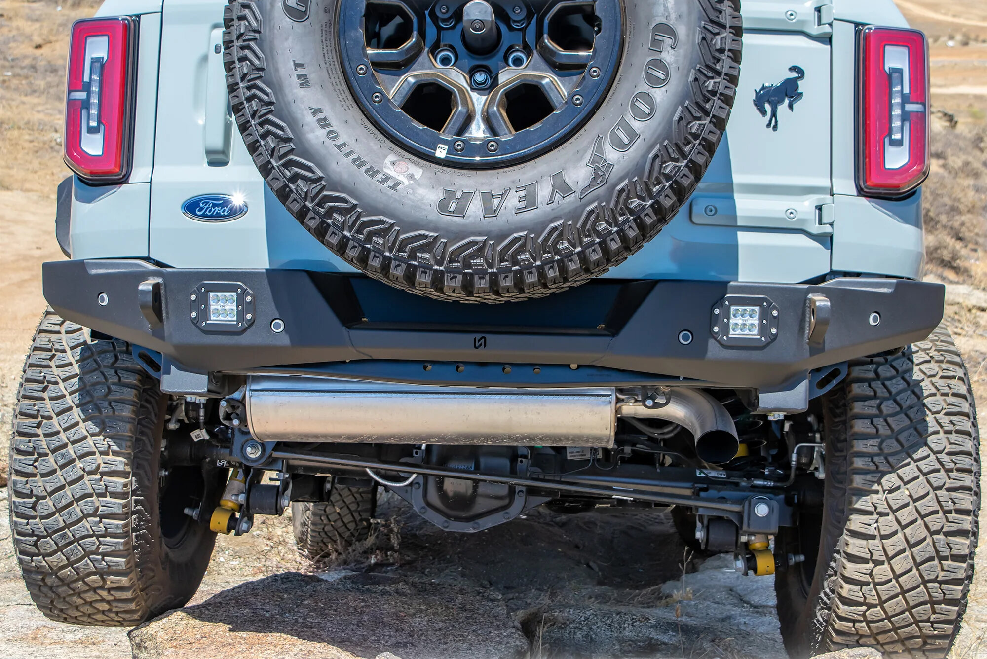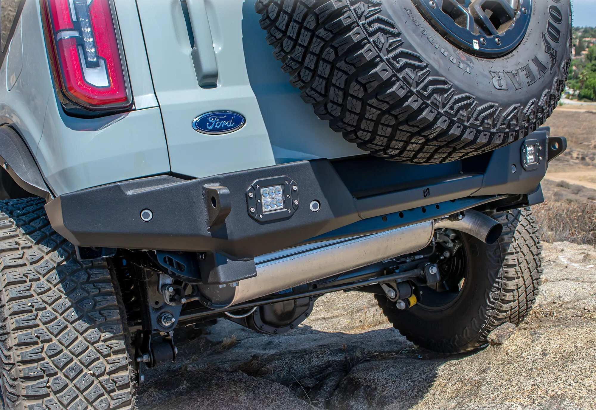 Trail-Focused Rear Protection: Designed to help shield the rear of the Bronco from rocks, ledges, and trail obstacles encountered during off-road driving.