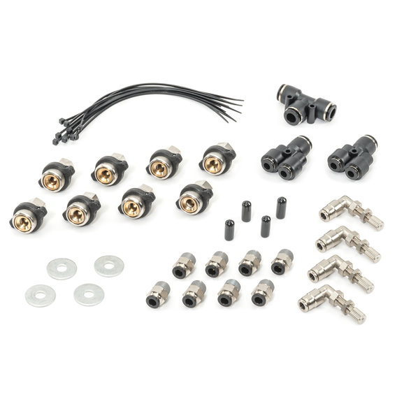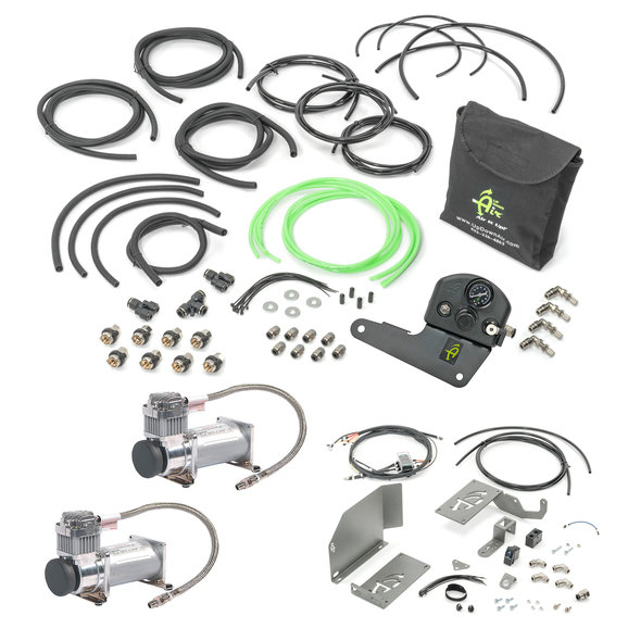 Complete System: The Air Delivery System includes all of the necessary components for installation. The included VIAIR compressors makes this the most complete system available. VIAIR 400C Compressor: The kit includes 2 VIAIR compressors that install easily to the Wrangler JK with the included mounting bracket. The 400C compressor features a 33% duty cycle compressor that can put out an impressive 2.54 CFM flow at zero PSI head pressure. This compressor can handle airing up all four tires quickly and efficiently.Parts Included