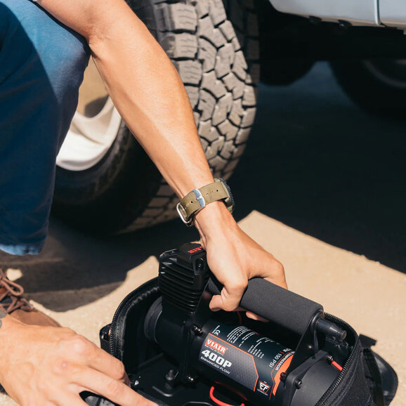 High-Performance Motor: The Viair 400P EF boasts a powerful 12V motor, delivering up to 150 PSI to tackle even the most challenging tire inflation needs.