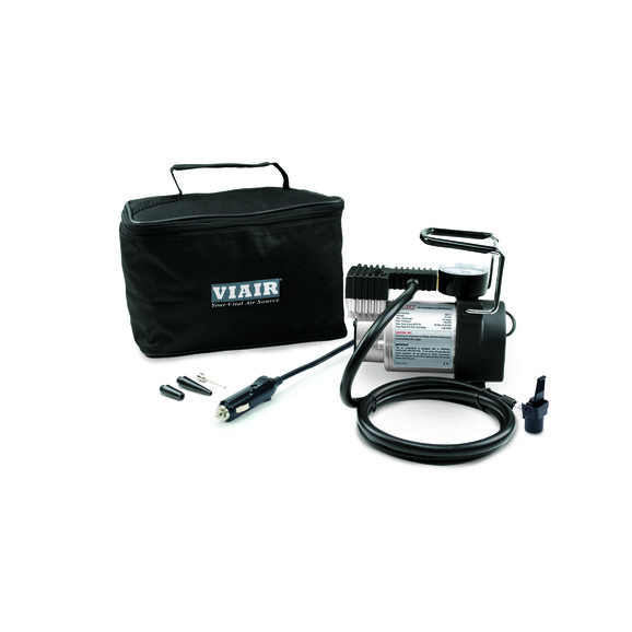 The Viair 74P Portable Air Compressor can fill up to a 225/60R18 (29x9R18) to 30psi in 30 minutes. It features a press on chuck, and a power cord that plugs into your cigarette lighter. Suitable for light duty car, Jeep, and truck tire inflation.