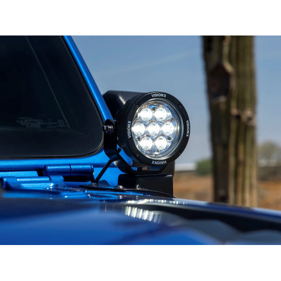 The Vision X CG2 LED Light Canons with Armor Series Off-road Light Brackets for Jeep Wrangler JL & Gladiator JT are specifically designed to take a beating and come back for more. The canon lights come in either a mini 3.7" light pair or a 4.7" pair. The LED lights produce a broad spot beam for added spread and distance. The brackets which mount on the hood cowl are torture tested in off-road racing and are made entirely of 4130 alloy hardened American steel. These brackets allow you to mount your Vision X LED Light Canons directly to your Jeep JL/Gladiator without any cutting or drilling using factory mounting points. Made in the USA!