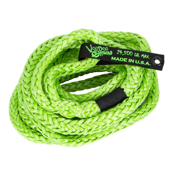 VooDoo Offroad's kinetic recovery rope gives you the edge you need over the competition. These ropes utilize kinetic energy that is gathered as the rope stretches which increases pulling force & reduces sudden impact generated by conventional tow straps. These straps are made of 100% 12 strand nylon braid & a water, UV & abrasion resistant polyurethane coating. This 3/4" x 20' rope has a 24,500lb breaking strength & stretches up to 38%