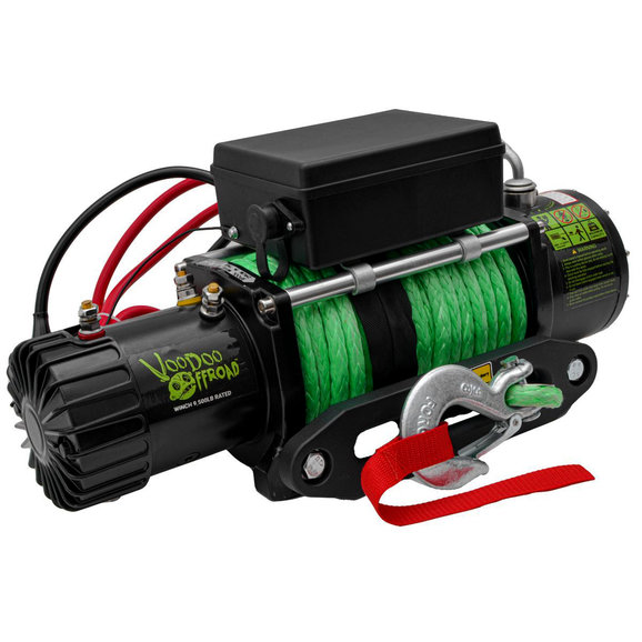 The Voodoo Summoner 9,500lb Winch Kit includes everything you need to start winching, including a heavy-duty winch, a control box, wiring harness, steel fairleads, steel hook and an 85-foot synthetic rope. Enjoy instant gratification and secure recoveries thanks to a robust 5.5-horsepower motor, all-steel planetary gear and an 85' X 3/8” synthetic winch line. With a rated line pull of 9,500 pounds, you can trail ride in confidence knowing the VooDoo Summoner Synthetic Rope winch has your back if needed.