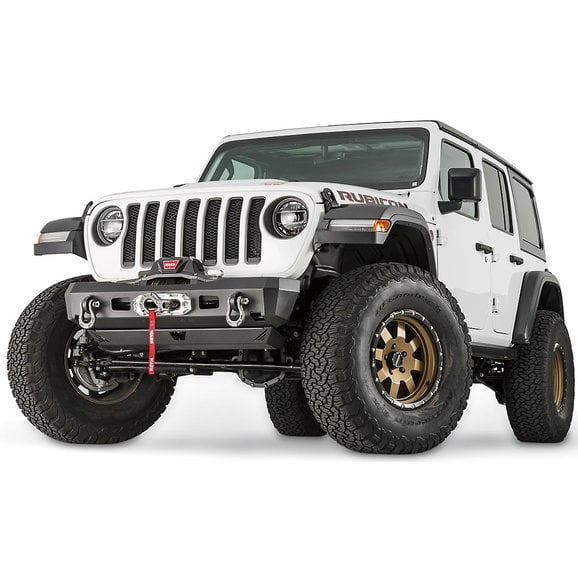 On the trail or on the road, the Elite Series Stubby Front Bumper is a perfect choice to upgrade the front of the Wrangler JL vehicle. Warn designs, tests and manufactures all products in the USA, and this bumper is specifically designed for any model of Wrangler JL 2 or 4 door Jeep. The bumper is constructed of heavy duty steel, and finished in a flat black powder coat that has withstood 408 hours of salt spray testing. The Stubby Width Bumper is more than capable of handling the high stress of winching, and will fit most Warn and aftermarket brands of winches. The precision welded recovery tabs will accept standard ¾” D-rings. Built in Jack points will come in handy while on the trail and allow easy access while jacking the vehicle. The geometry of this bumper will allow clearance for 37” tires with a 2” lift.