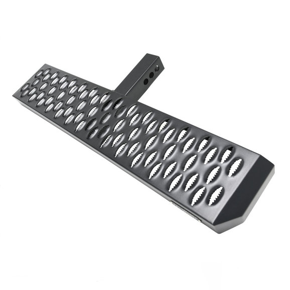 Design: The Grate Hitch Step has a 1/4" high punched tread to provide traction in any weather condition. This stylish square step is designed to work with any standard 2” receiver hitch. An anti-rattle bracket secures the hitch step to eliminate rattling.