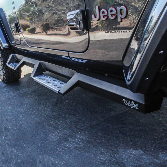 1-Piece Construction: Attaches directly onto your Gladiator JT's rocker panel this step gives you more then 2" of toe to heel step area. Coated with a textured black or textured black with stainless steel drop step finish to resist corrosion & to keep your steps protected from outdoor debris for years to come.