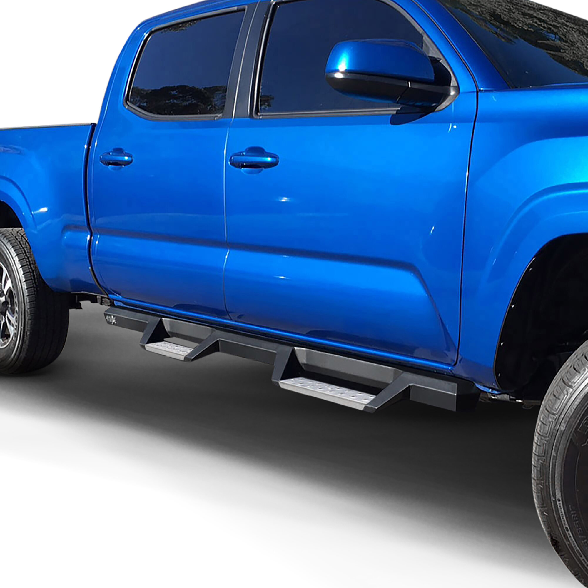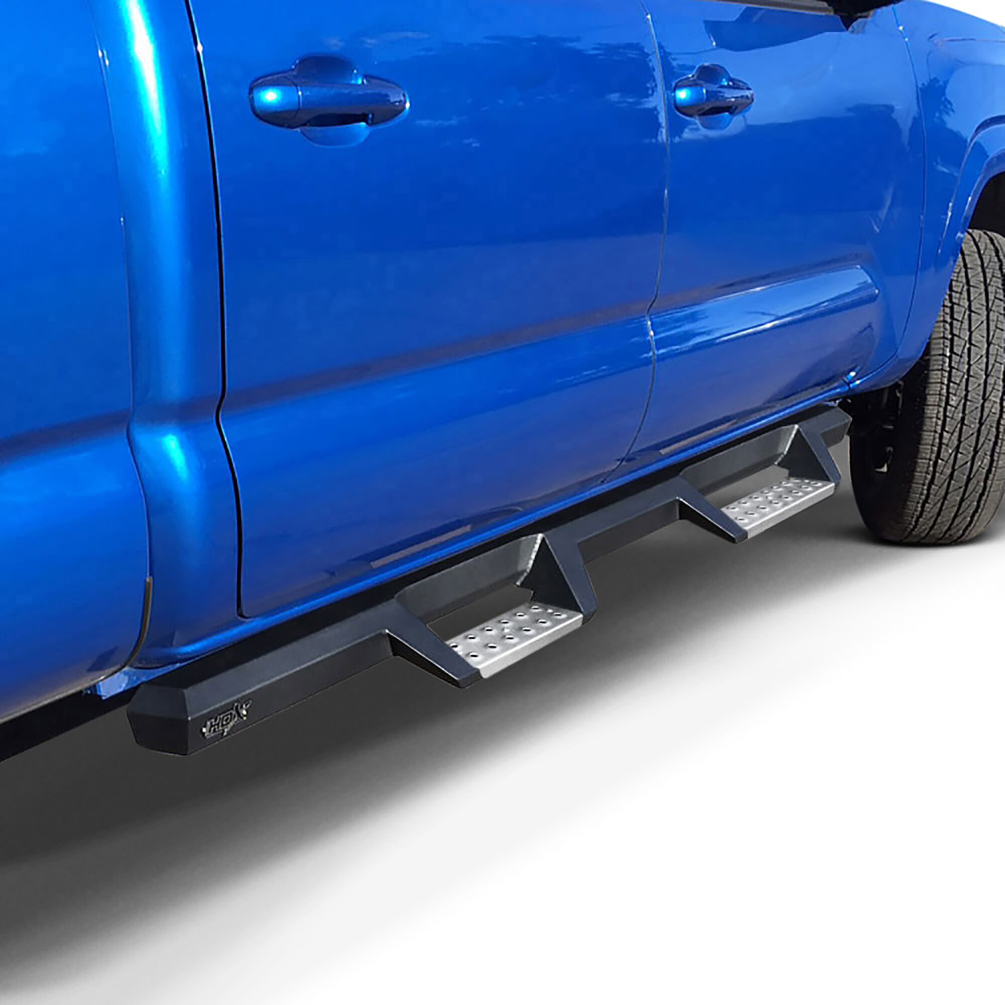Engineered with polished stainless steel tubing and integrated HDX drop step plates, these nerf bars provide dependable durability while improving everyday accessibility. The wide, textured step pads help ensure stable footing when entering or exiting the cab, even in challenging weather conditions. Their corrosion-resistant stainless construction makes them well suited for harsh climates and year-round driving environments while maintaining a premium appearance. Designed specifically for Toyota Tacoma Double Cab models, the step bars install securely using vehicle-specific mounting brackets to deliver reliable performance and a clean, factory-style fit.