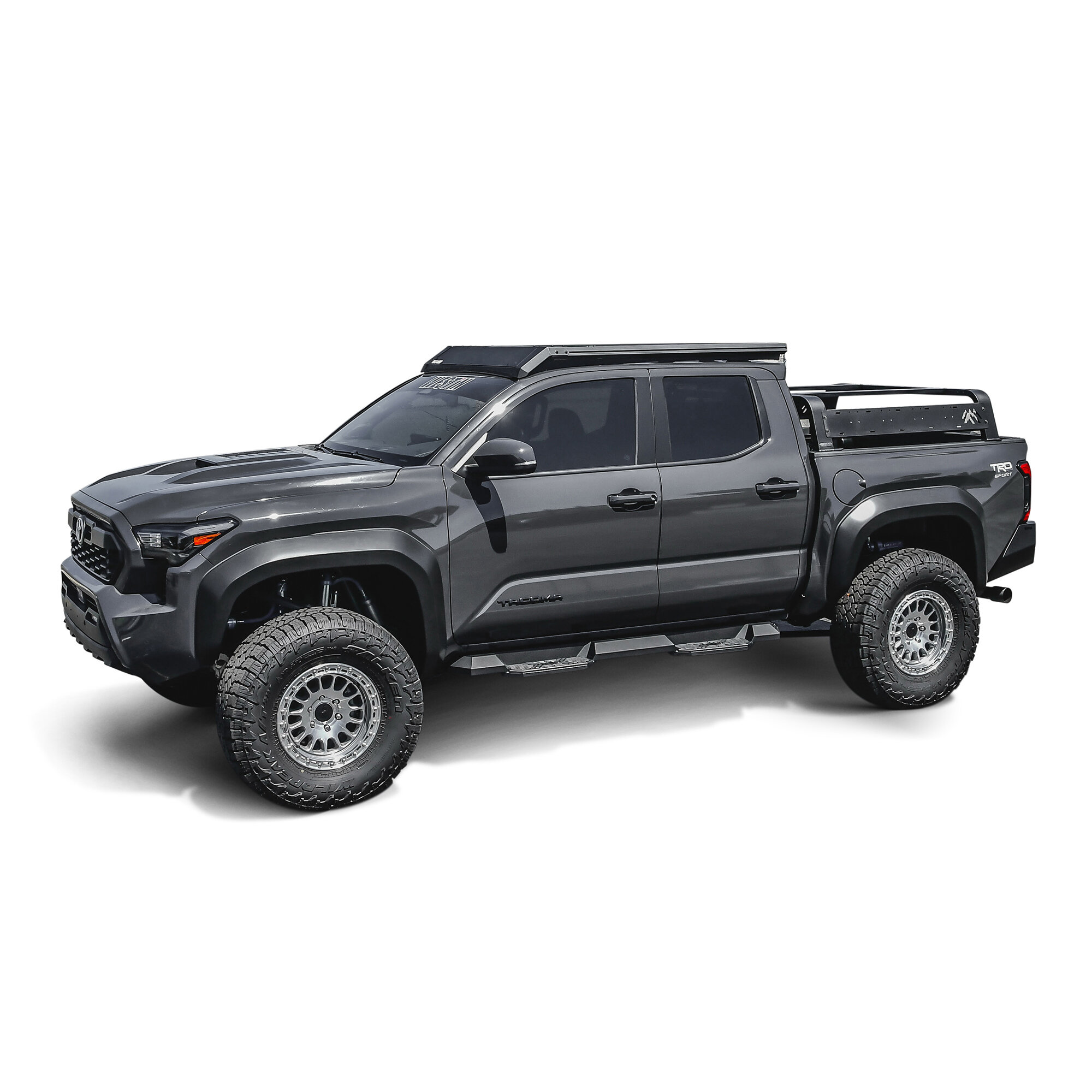 Featuring a reinforced steel step bar design with integrated HDX Xtreme step plates, these nerf bars provide a stable stepping surface while adding rugged side protection. The wide, textured step pads offer excellent traction in all weather conditions, helping drivers and passengers enter and exit the cab with confidence, whether on the trail or in daily driving situations. A durable, textured black powder-coated finish helps protect the bars against rust, corrosion, and environmental exposure while maintaining an aggressive appearance. Precision-engineered for Tacoma Double Cab models across multiple generations, these step bars install securely using vehicle-specific mounting brackets for a strong and reliable upgrade.