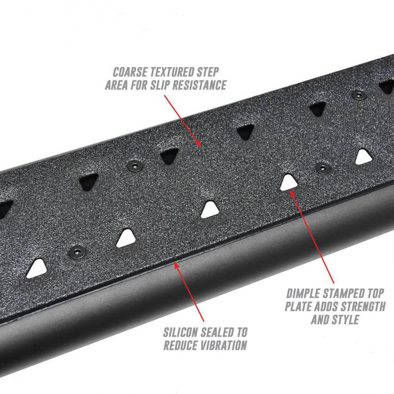 Top Plate: Coarse textured step area for slip resistance and has a unique dimple stamp.