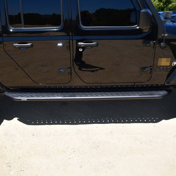 Give your Jeep Gladiator JT the rugged good looks and sure footing steps it deserves with the Westin Outlaw Running Boards. These premium running boards combine style and function to make a lasting impression on and off road. The 2" diameter steel tubing and 16-gauge steel step plate provide maximum strength and durability. Finished with a corrosion-resistant e-coat base and a textured black powder-coat finish for maximum protection from the elements. The 4" step plate with raised treading provides a secure and slip-resistant step for you and your passengers, regardless of wet or muddy conditions. All this with the clean and modern look due to its single-tube design.